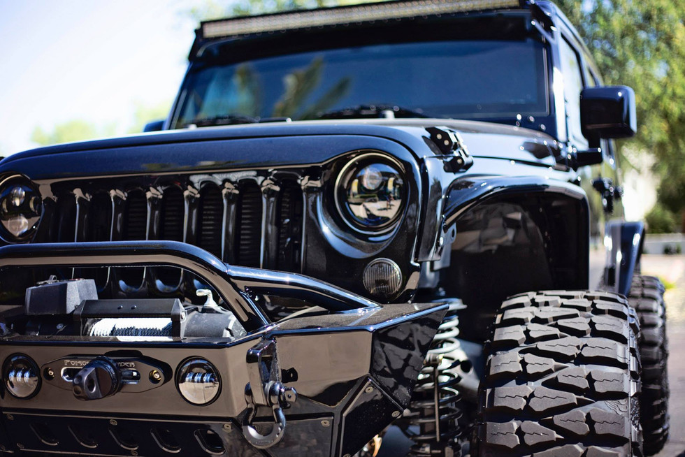 2015 Jeep Wrangler Sport | American Expedition Vehicles 4.5" Lift Kit | DV8 Slant Back Hard-Top and Grille | Poison Spyder Customs Fender Flares and Rear Bumper | Smittybilt Gen2 Front Bumper and Winch | J.W. Speaker Corporation Headlights and Foglights | Factor 55 Pro-link | AMP ResearchPower Steps | 20x10 Fuel Offroad Rampage 2-Piece Wheels | 37x13.50x20 Nitto Tire Mud Grapplers | Magnaflow Exhaust | 50" LED Light Bar | TeraFlex Suspensions Tire Carrier | Color Matched: Top, Bumpers, Door Handles, Tire Carrier and Mirrors