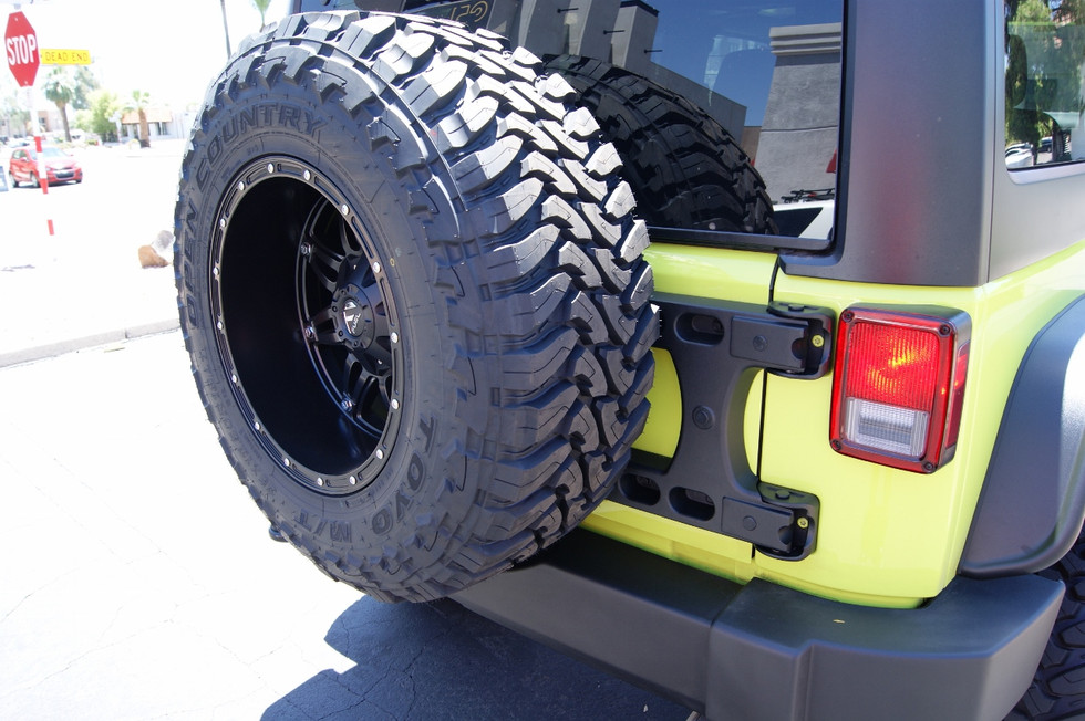 2016 Jeep Jk Sport 4 Door Hyper | 3.5” AEV DualSport SC Suspension | Bushwacker Flat Fenders in Textured Black | Teraflex HD Hinged & Adjustable Spare Tire Carrier | 35x12.50R18 Toyo Open Country MT | 18x12 Fuel Offroad Hostage in Satin Black w/ -44mm Offset | Poison Spyder Brawler Rockers